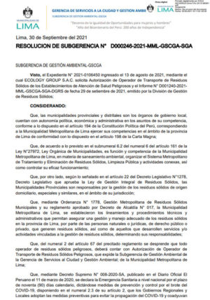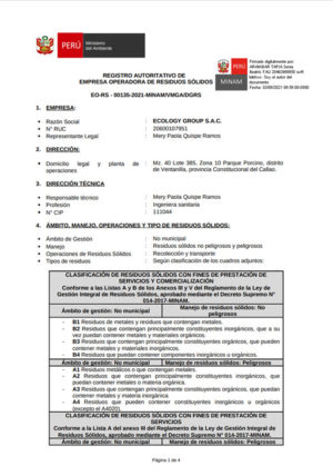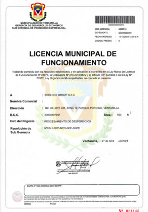 Contamos con las autorizaciones que demanda la legislación vigente, nuestra responsabilidad, calidad y dedicación en nuestros servicios ha permitido que nuestros clientes nos consideren como parte importante en la gestión de sus residuos sólidos.