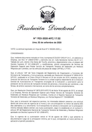 Somos una empresa peruana de capitales nacionales que se dedica a prestar servicios de recolección y trasporte de residuos sólidos peligrosos y No peligrosos a nivel nacional.
